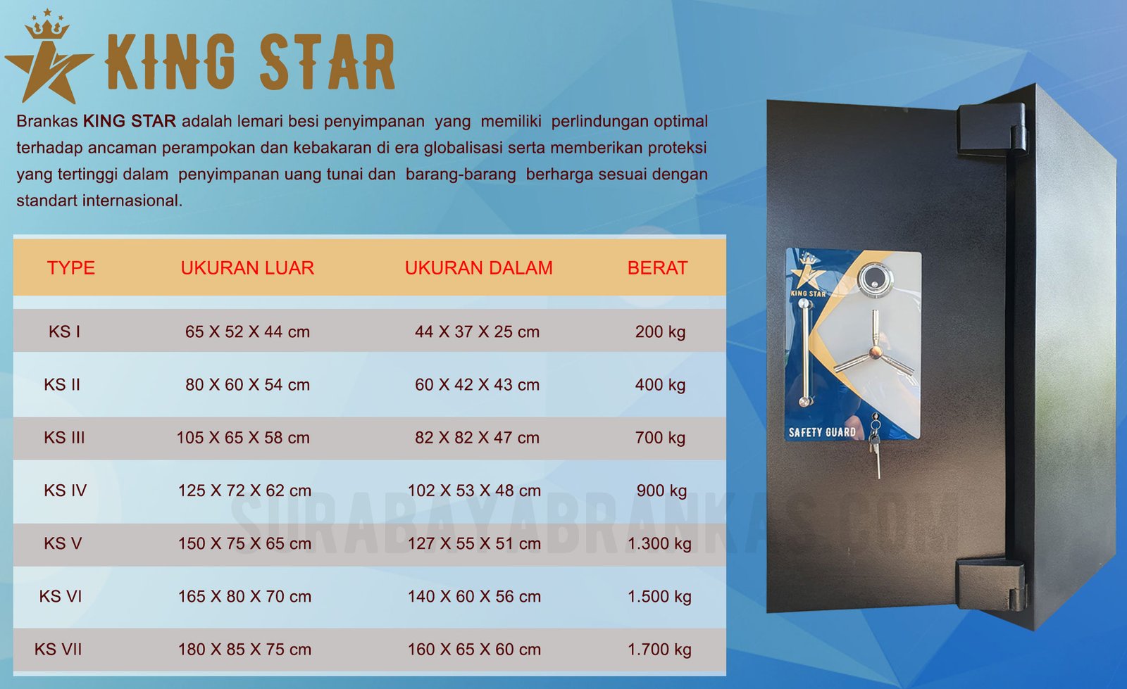 Brankas King Star untuk memberikan yang terbaik bagi konsumen. Harga mulai dari 3 Jutaan
